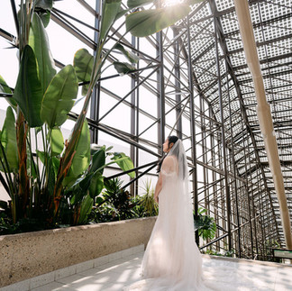 They headed to the Edmonton Convention Centre, where they shared a private first look and exchanged vows inside the convention’s beautiful glass atrium—surrounded by lush greenery and bathed in soft sun rays.